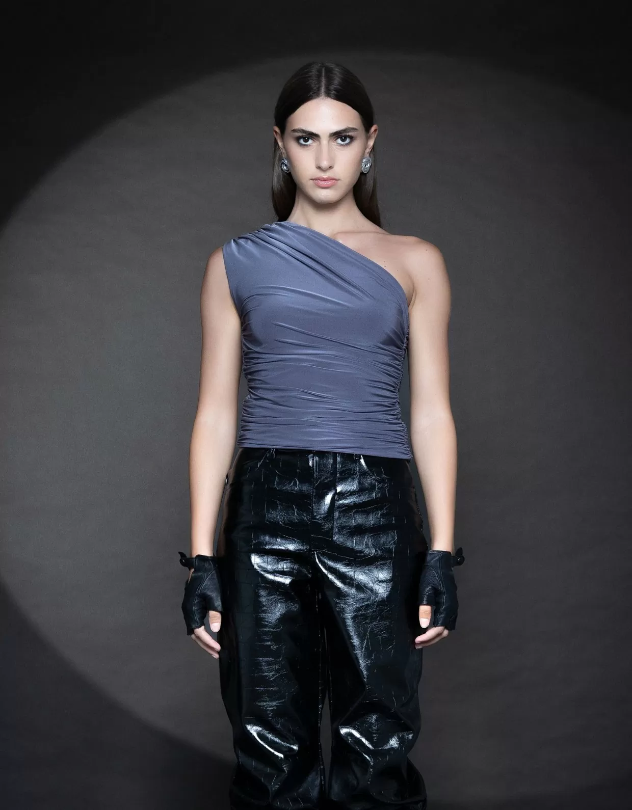 - Ψηλόμεσο παντελόνι από ανάγλυφο συνθετικό δέρμα
