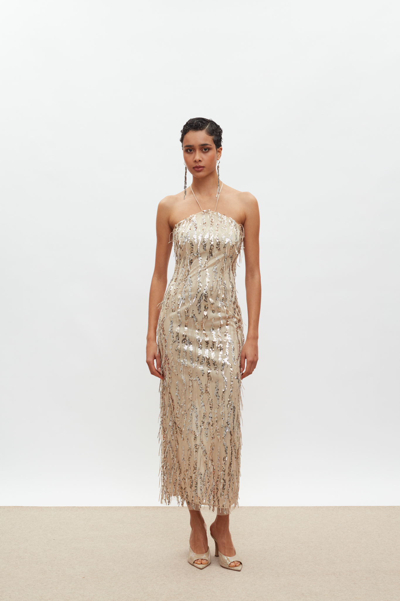 - Παγιέτα βροχή σε όλο το φόρεμα