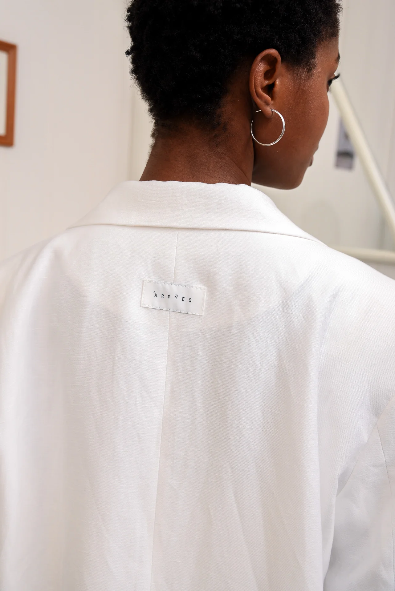 - Το Coconut Milk Blazer σε λευκό – ένα διαχρονικό απαραίτητο. Κατασκευασμένο από premium ύφασμα σε συνδυασμό με λινό, αυτό το μεγάλο μπλέιζερ διαθέτει δομημένη σιλουέτα, κορυφαία πέτα και κλείσιμο με δύο κουμπιά. Οι λειτουργικές τσέπες με πτερύγια προσθέτουν πρακτικότητα, ενώ η πλάτη παρέχεται με ετικέτα μάρκας “ARPYES”.