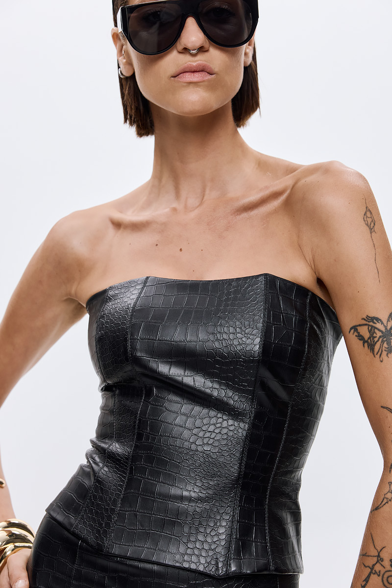 Dahlia Croco Bustier – Black/Brown
