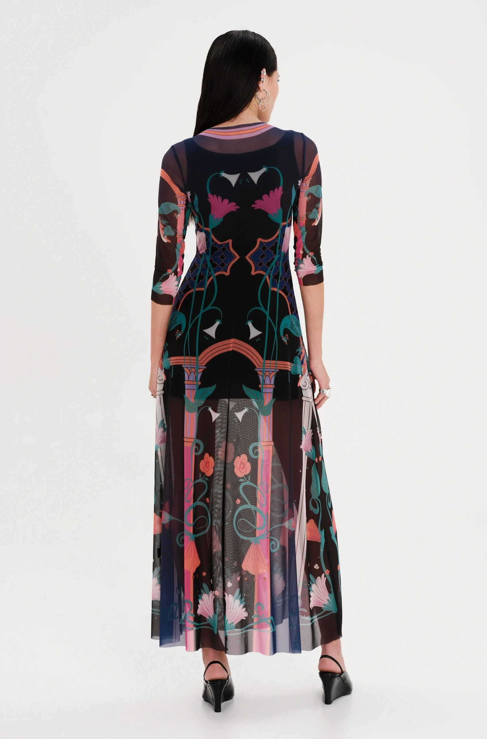 Epoque Mesh Long Dress – Print