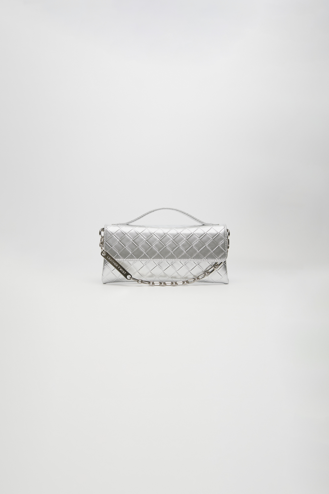 - Στο μπροστά μέρος είναι διακοσμημένη με μία ασημί χειροποίητη αλυσίδα με χαραγμένο το logo του brand.