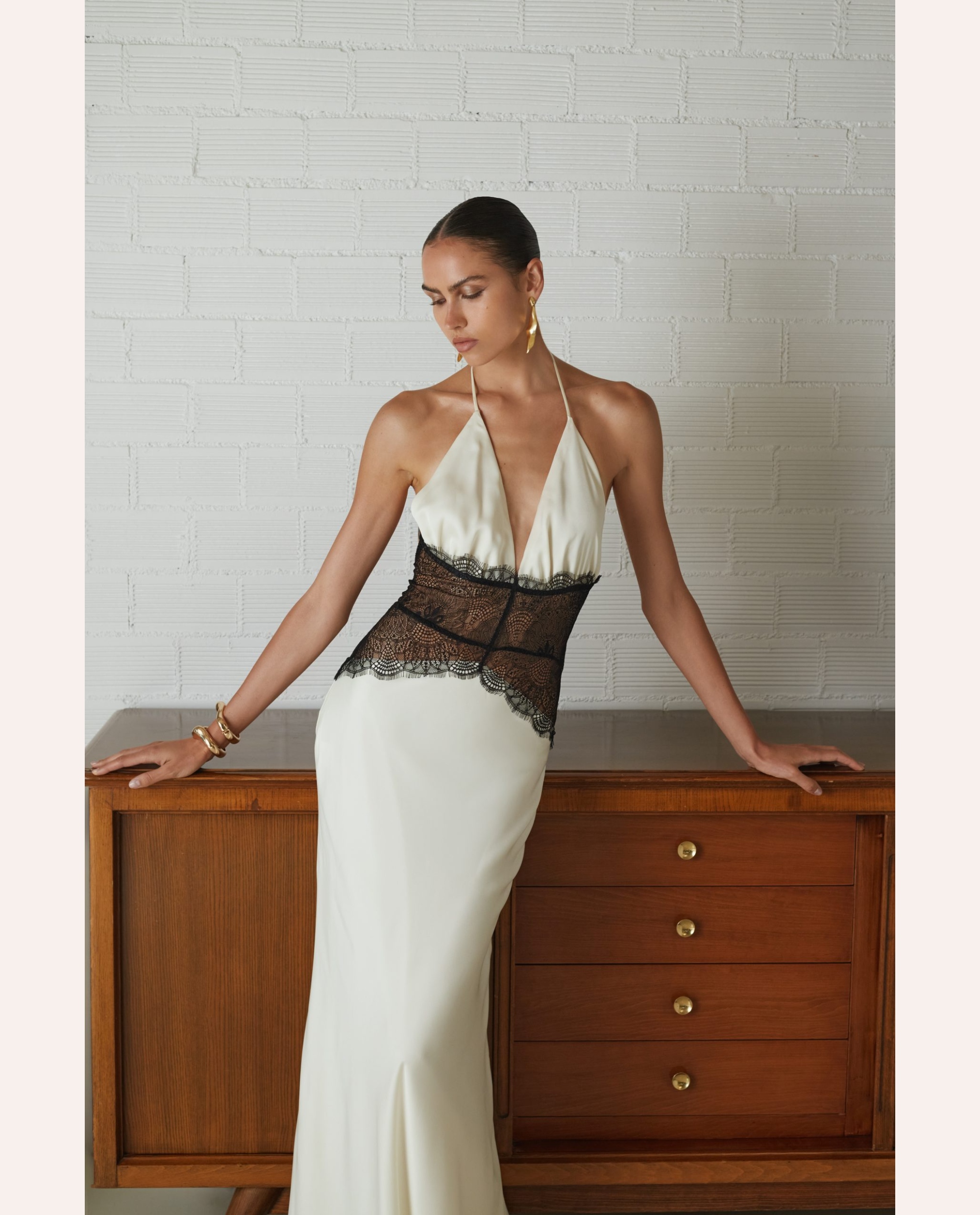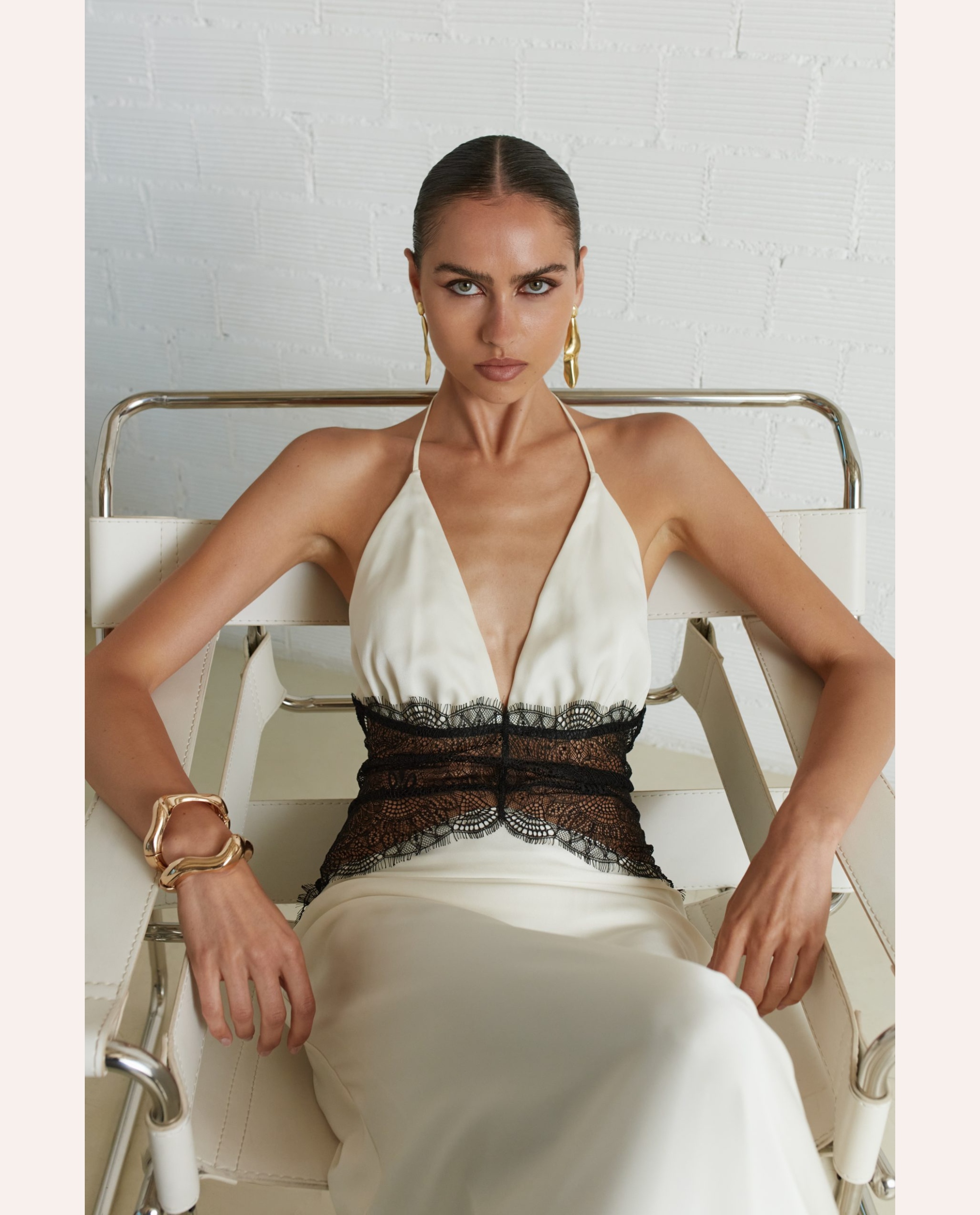 Ένα statement bodysuit που ισορροπεί ανάμεσα στη διαφάνεια και την υψηλή ραπτική αισθητική. Η φίνα, διάφανη βάση αγκαλιάζει το σώμα σαν δεύτερο δέρμα, δημιουργώντας μια καθαρή, μίνιμαλ σιλουέτα που λειτουργεί ως καμβάς για το εντυπωσιακό κεντρικό μοτίβο. Το ανάγλυφο, embellished απλικέ στο μπούστο προσθέτει υφή και βάθος, με διακριτική λάμψη που αποκαλύπτεται μέσα από το φως. Οι μακριές γραμμές στα μανίκια ενισχύουν τη δραματικότητα του σχεδίου, ενώ το body cut διασφαλίζει άψογη εφαρμογή και σύγχρονη κομψότητα. Ένα κομμάτι που μεταφράζει τη θηλυκότητα σε fashion-forward γλώσσα — τολμηρό αλλά εκλεπτυσμένο, ιδανικό για layered εμφανίσεις ή ως πρωταγωνιστής σε βραδινά looks με αυστηρό tailoring ή sleek bottoms.