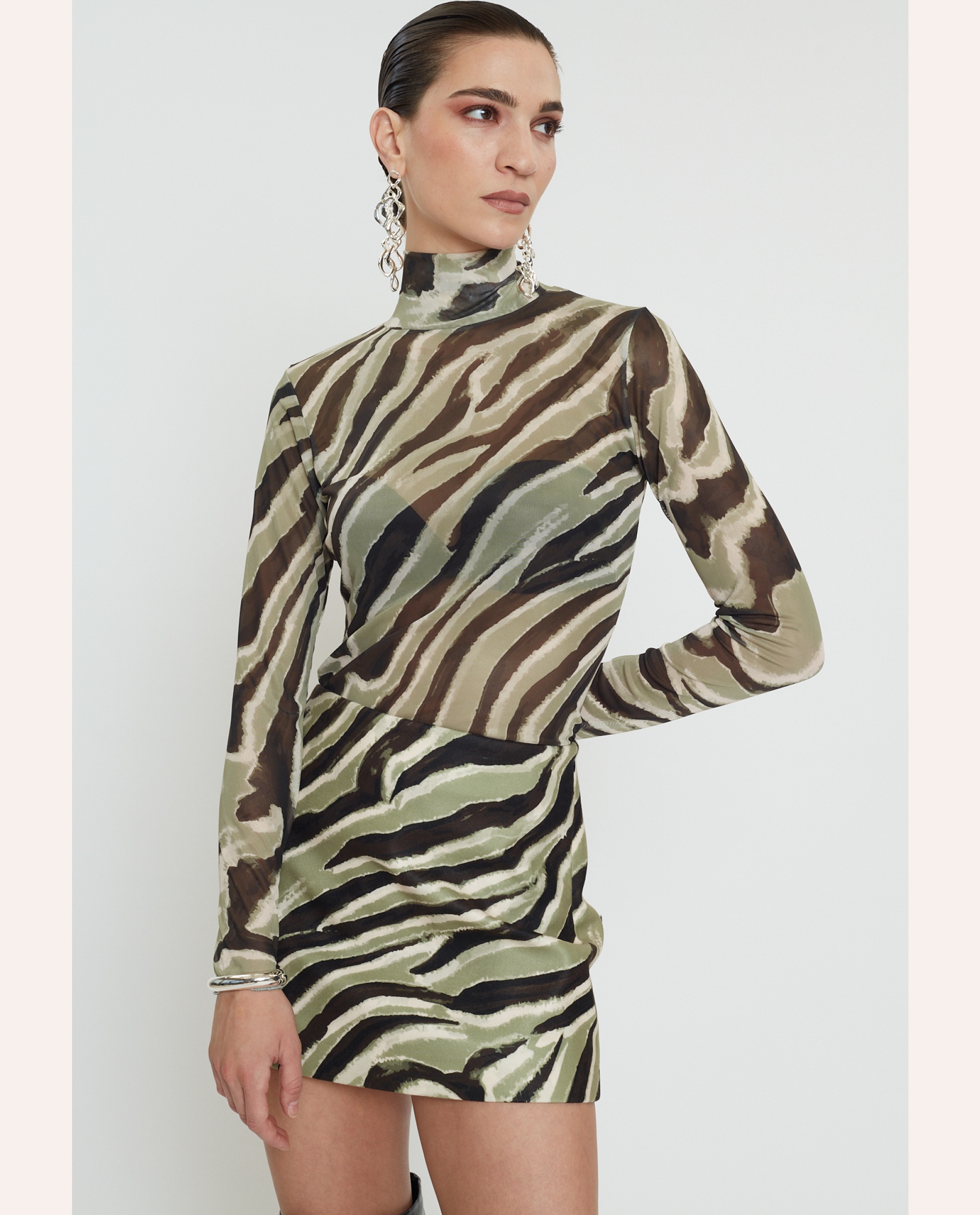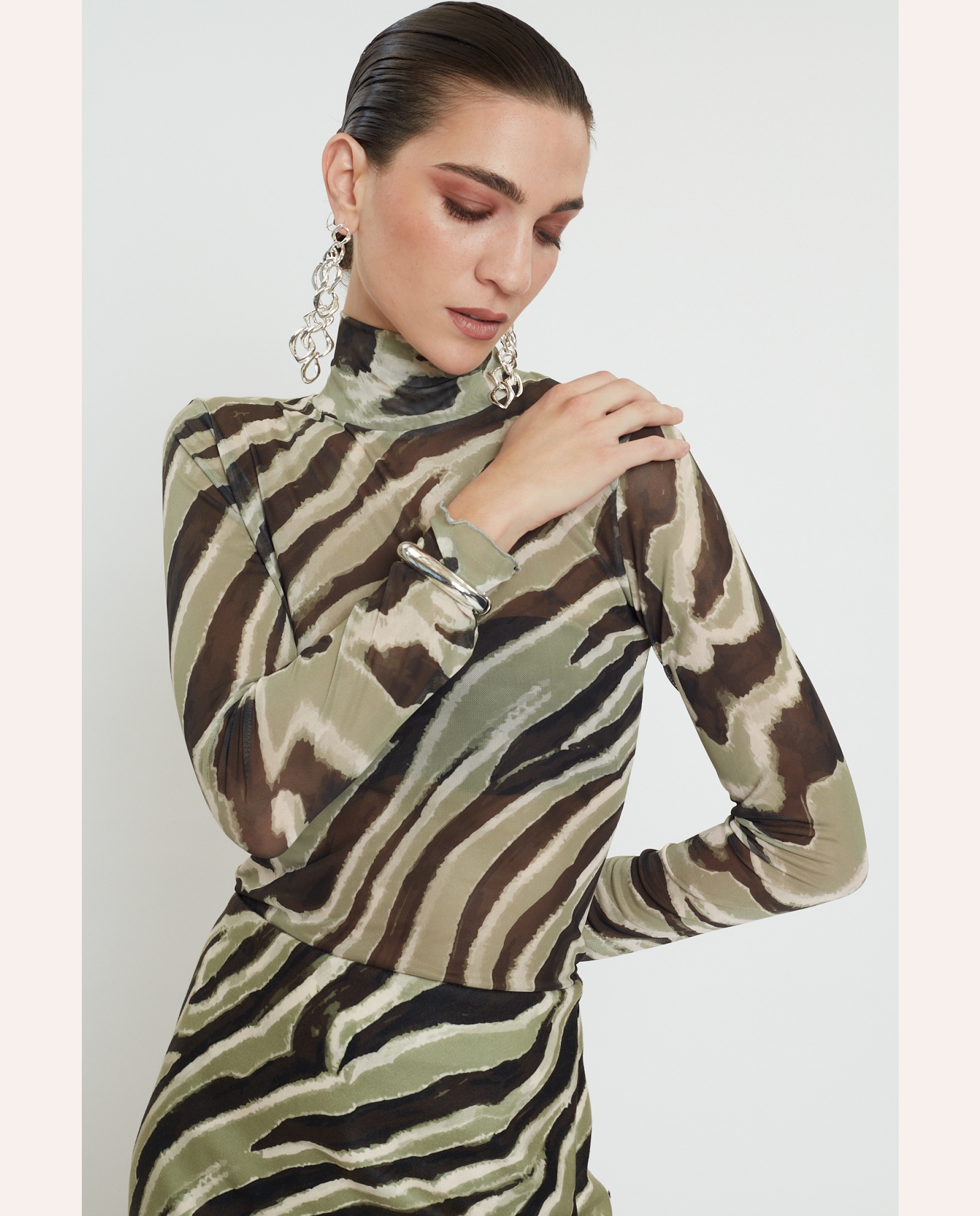Keisi Tulle Top – Olive Zebra